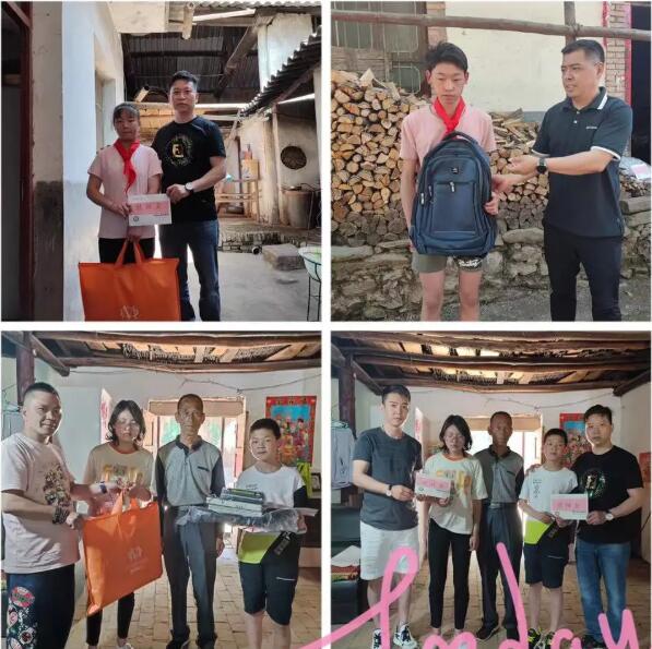 商会的各位会长询问了孩子们的学习、生活等基本情况,与孩子们以及孩子的爷爷奶奶深切交谈。在详细了解孩子们的生活、学习情况后,鼓励他们一定要好好学习,勇于克服困难、战胜困难、自立自强。并告诉孩子们虽然他们的父母不在了,但是社会上的“爸爸”妈妈”却用行动来表示对他们的关心和爱护,让他们时刻感受着社会的大爱,让他们的脸上时刻洋溢灿烂的笑容,让他们在祖国的同一片蓝天下幸福快乐成长。随后各位会长给孩子们送上学习用品、文具以及慰问金等。有个别会长更是带着自己的子女去看望这些哥哥姐姐,并给他们带上红领巾,行少先队礼,向这些哥哥姐姐致敬,向他们自立自强,勇于克服困难的精神学习。