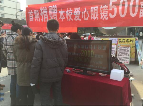 2014年11月份以来,副会长企业“陕西好宜明眼镜长延堡眼镜批发城”与团省委合作,举办了“高校奖优扶贫爱心工程”活动,为陕西师范大学、长安大学、西安邮电大学、西安外国语大学四所高校捐赠眼镜2000副,总价值40万元。每所学校捐赠500副眼镜,每副价值200元,对品学兼优、家境贫困具有志愿奉献者的学子予以扶持,让他们享受视觉健康,学业有成。
