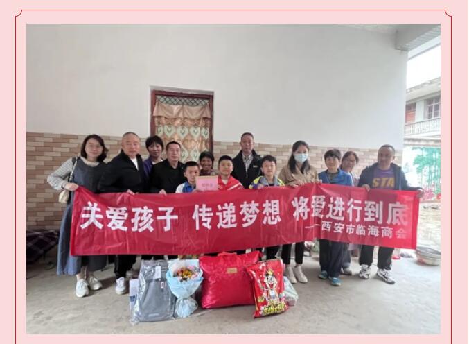 生命因奉献而精彩,世界因爱心而美好。儿童是祖国的未来、民族的希望,关注儿童就是关注未来、关注发展。爱,对于成长在完整家庭的孩子来说,他们从小就被幸福包围,拥有父母的爱。可谁又曾想到,在我们城市的角落周围有这样一个弱势群体,他们是孤儿!那些无助的孤儿们。在六一儿童节到来之际,为了弘扬中华民族尊老爱幼、扶弱助残的传统美德,2023年5月21日,我商会带着浓浓的爱心,一行20余人,驱车来到蓝田县看望几名孤儿。受李伯连会长的委托,西安市临海商会执行会长李先龙、秘书长冯美利、监事长项中考,名誉会长徐能星,常务副会长李红,副会长屈吕朝、胡新坚、何志胜,中金公司高级理财经理冯宝宝和部分会员以及部分会长的孩子参加了此次活动。